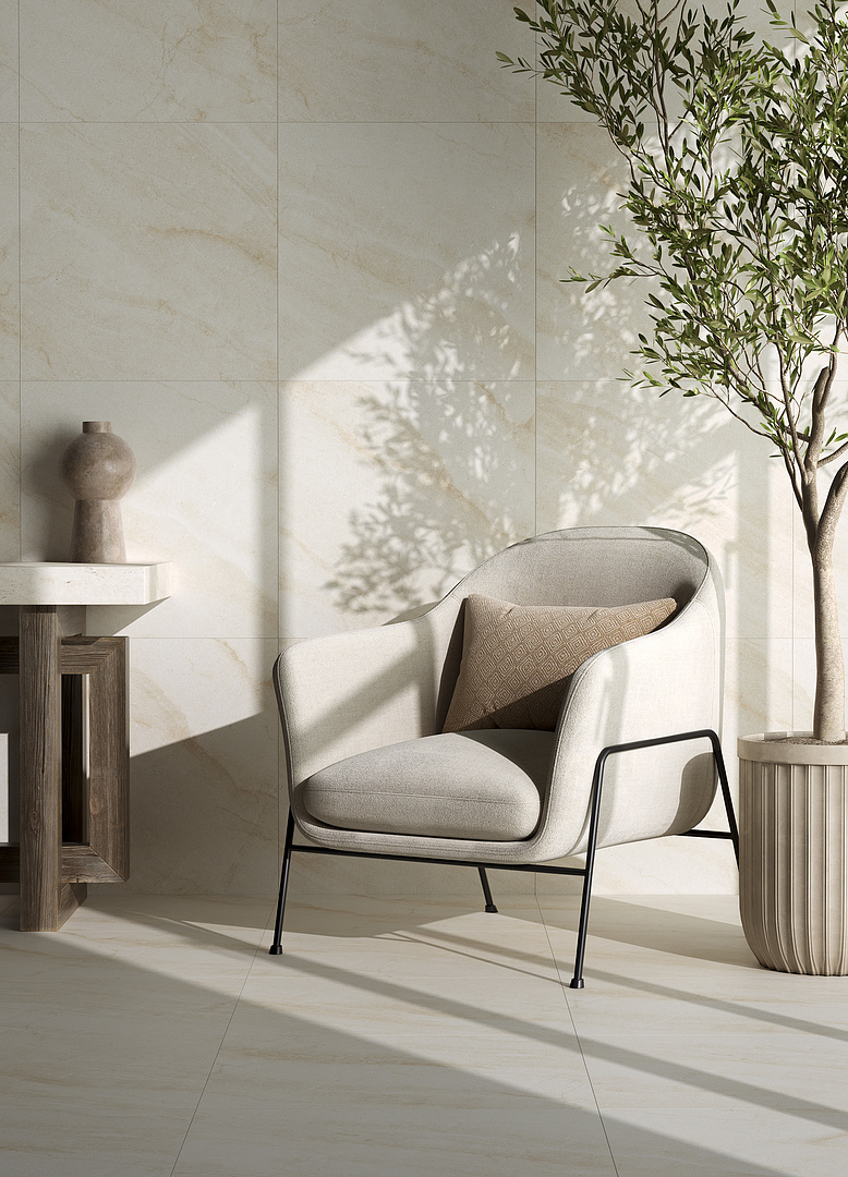 Коллекция Bereg с фактурой волжского песчаника – это граниль в составе глазури для зернистого рельефа и блестки, отражающие свет влажными от речной воды частицами.