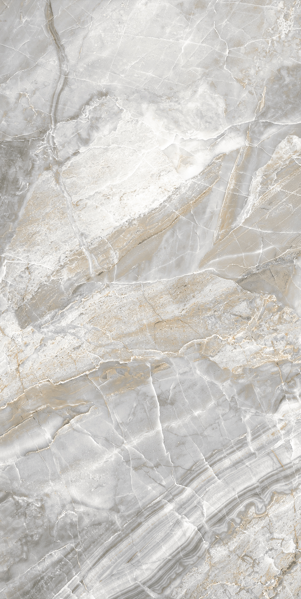Комбинация минералов придает этому мрамору уникальные черты: крупные осколки оникса формируют участки мягких градиентных цветовых переходов, а россыпь кристаллов кварца и уходящие вглубь прожилки создают эффект "игры" в лучах света и материал выглядит по-разному в зависимости от освещения. Эта особенность сорта идеально воспроизведена в коллекции Canyon, а крупный формат плитки позволяет создать визуально сплошное пространство.