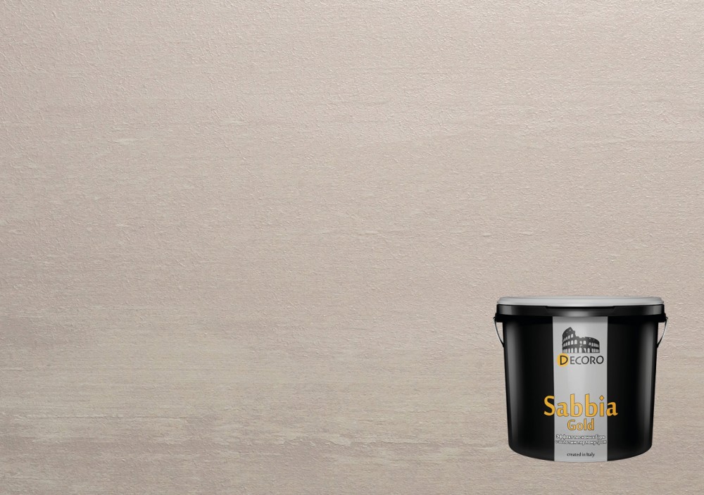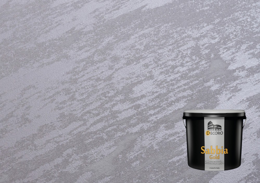 «Sabbia Gold» – искрящийся декоративный материал, с элегантным перламутровым блеском. Позволяет создавать причудливый, не повторяющийся рисунок в виде «песчаных барханов», с ярко выраженной игрой света и тени. Данное декоративное покрытие позволяет создавать как нежные, романтичные, так и контрастные, броские интерьеры.