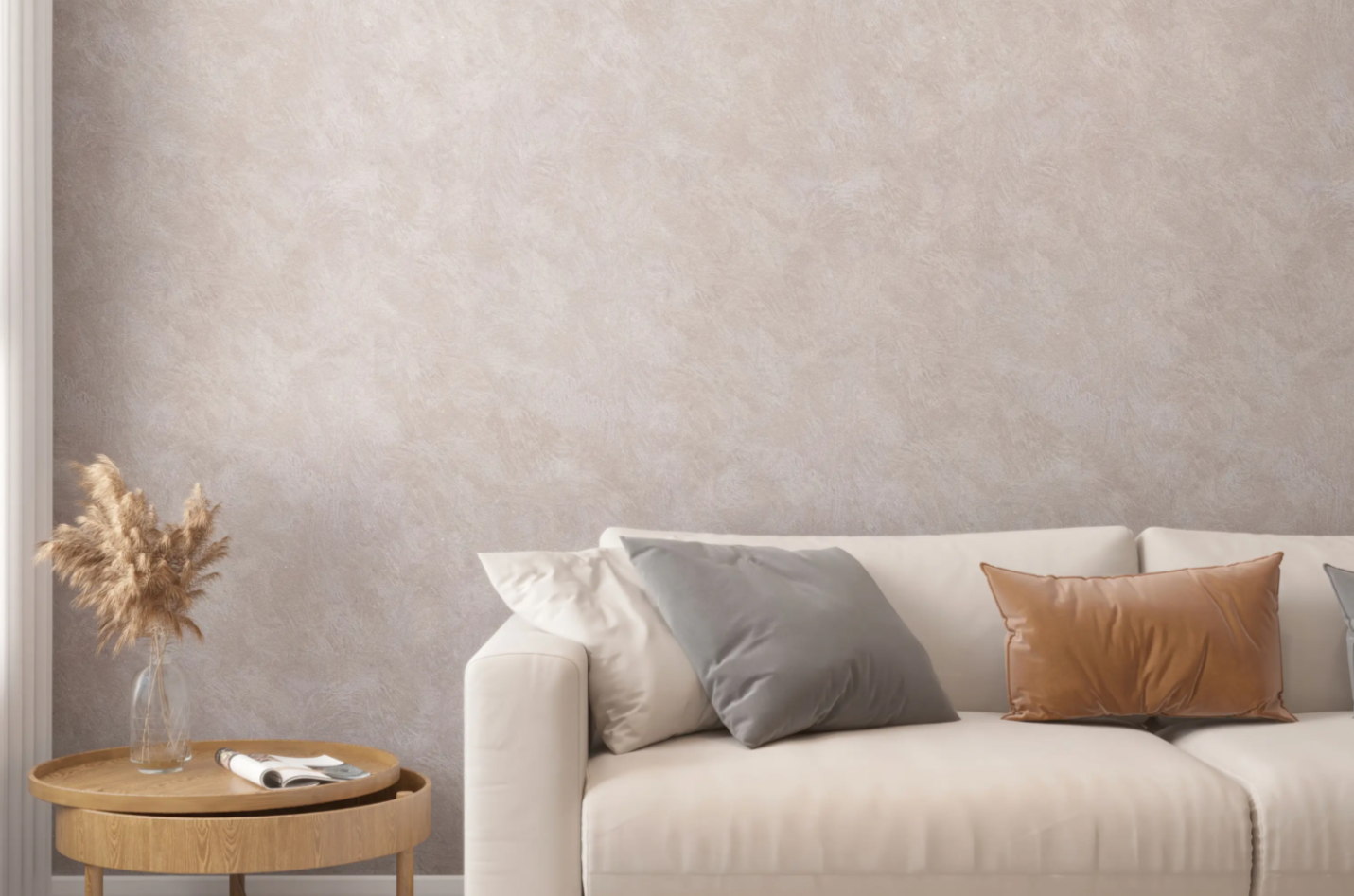 Декоративное покрытие с фактурой мелкого песка и серебристо-перламутровым отливом. Шелковисто-матовые частицы создают изящную игру света на поверхности.